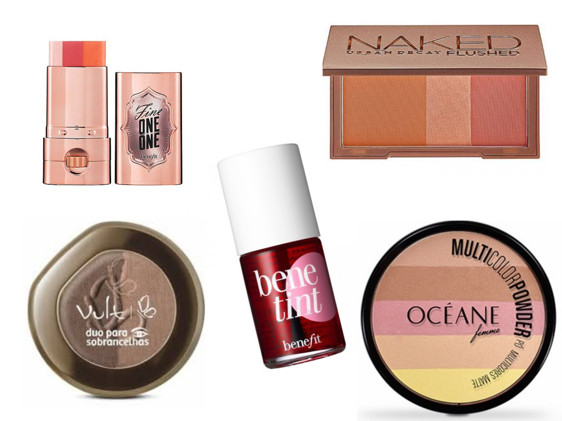 A Benefit é uma ds marcas com mais produtos multiuso, é o caso do trio de blush, browser e iluminador fine one one, ou do benetint, que serve para pintar lábios e bochecha. A vult tem um duo de sombras para sobrancelha que funciona como sombra também. Segue ai algumas sugestões para você economizar espaço na necessaire de maquiagem: