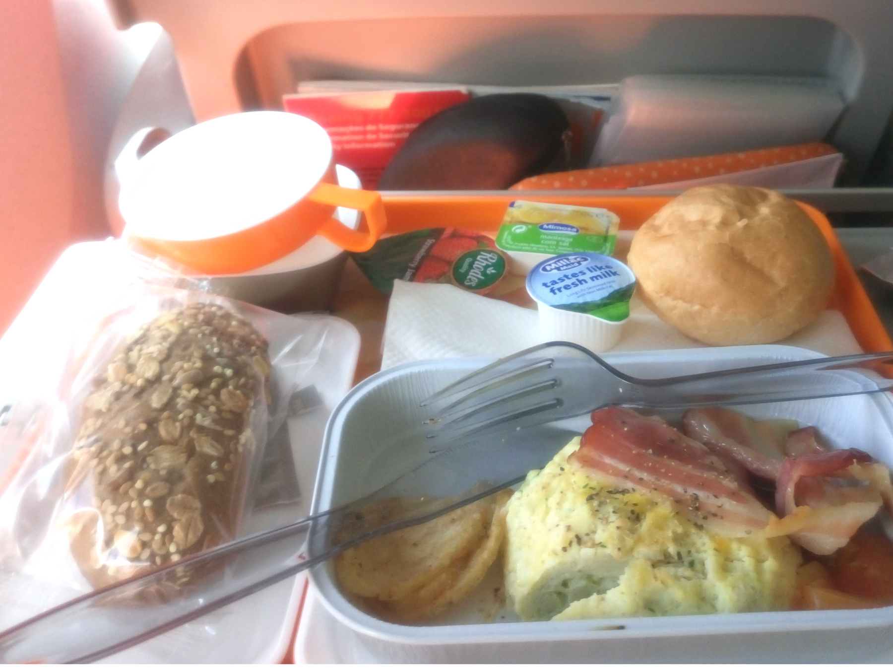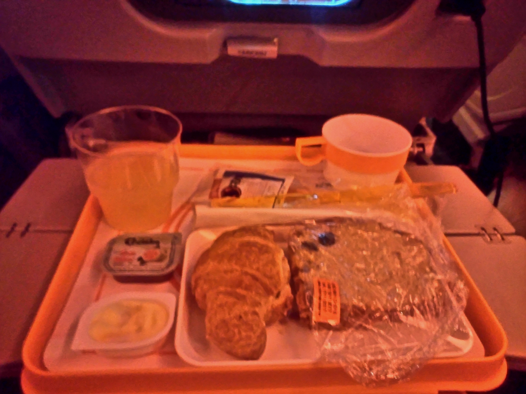 O café da manhã foi pobre, pão com manteiga e seja feliz. Eu achei discrepante de ruim comparando com o jantar. O almoço ou “brunch” foi ok, acabei comendo pouco pois tinha acabado de acordar, no Brasil seriam 4 da manhã e eu não queria comer nada!