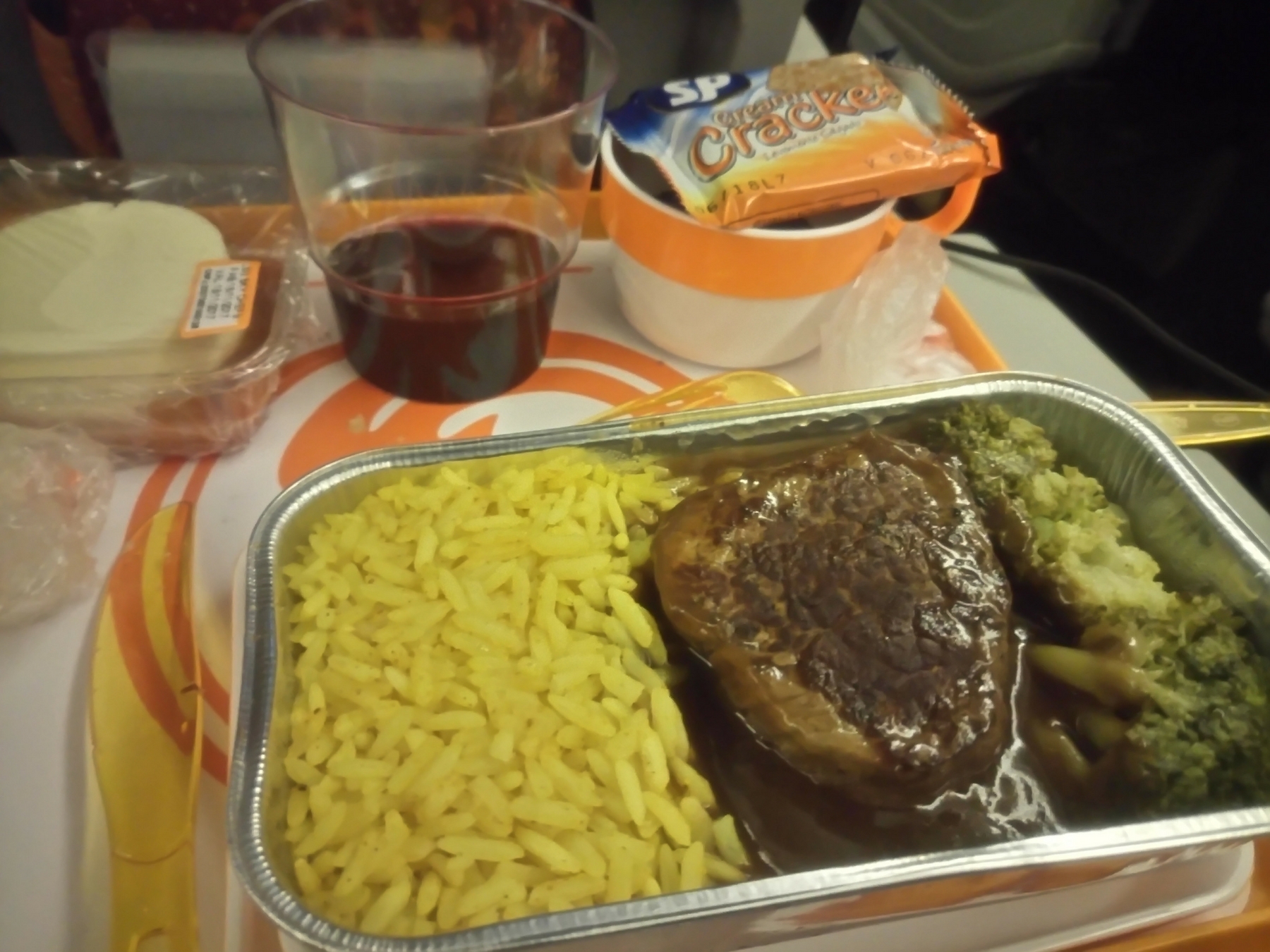 Eu havia passado o dia sem comer praticamente (tomei uma Coca desesperadamente pra amenizar a fome), estava muito quente em Cape Town e eu estava completamente cansada. Acabei já chegando ao aeroporto de Cape Town em um estado de exaustão. Por sorte a comida do vôo também estava ótima e foi um jantar que recompôs o estado de fome.