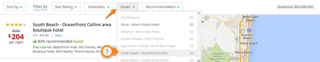 Antes mesmo de escolher o número de estrelas e outros detalhes, escolha o bairro. Com ele você se aproxima mais ainda do hotel ideal sem susto.No meu caso escolhi South Beach-Collins pois conheço a região, sei que é farta em bons hotéis.