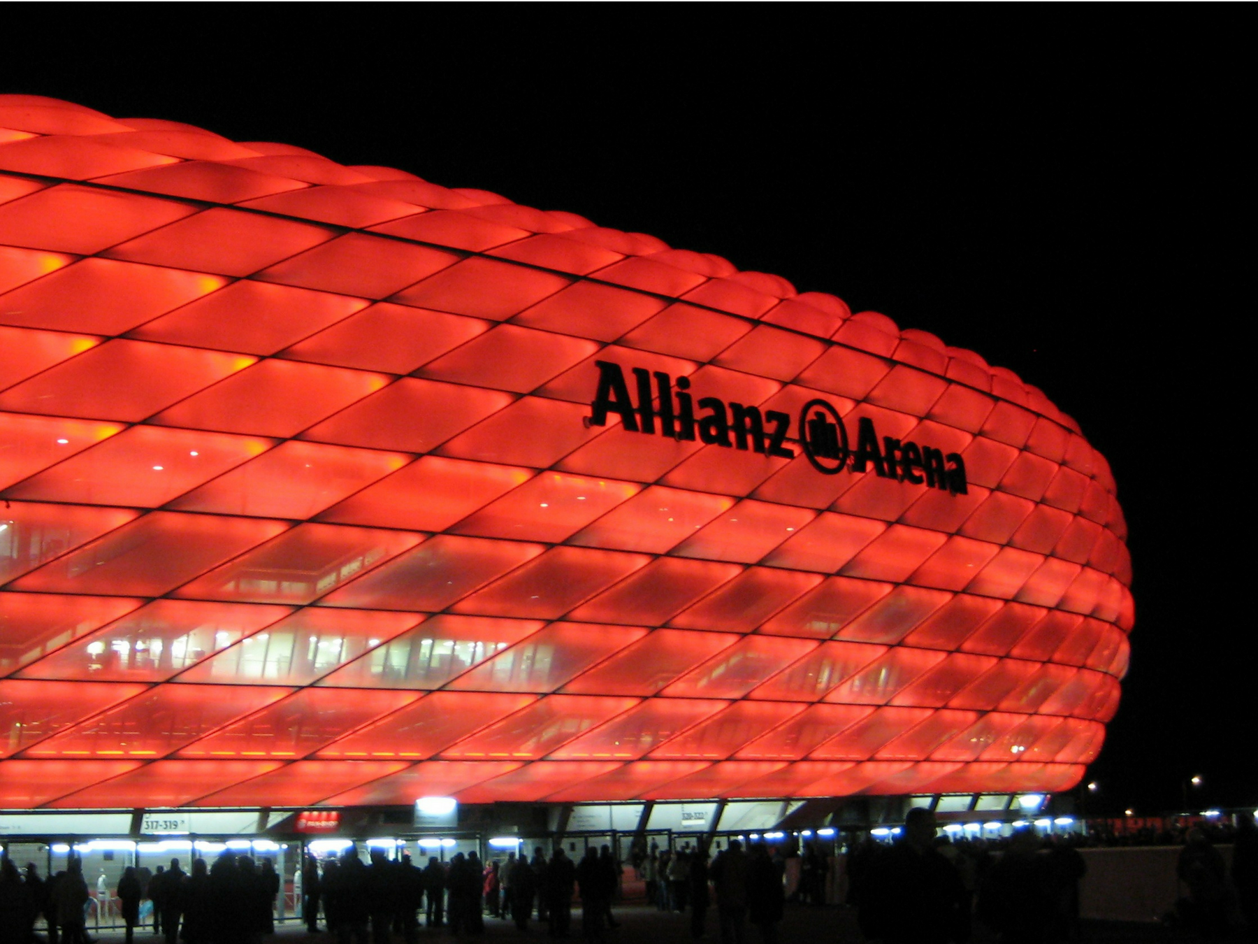 Quando eu leio em voz alta o nome desse estádio já me vem imagem da copa de 2006 na Alemanha. Ao fundo, uma imagem noturna do Allianz Arena mudando de cor. Esse é o primeiro centro esportivo do mundo que muda a cor das suas paredes externas, de acordo com o time ou evento. Muito legal! Esse estádio é utilizado pelo Bayern de Munique mas o projeto original é de arquitetos suíços.