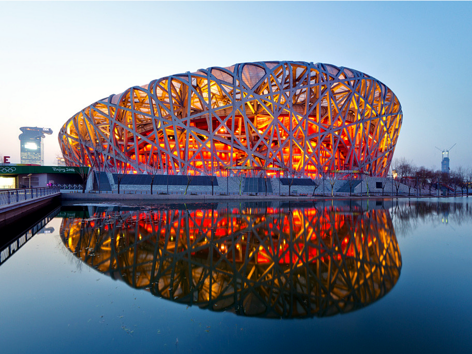 Estádio nacional de Pequim ninguém sabe o que é mas se você disser “ninho de pássaro” as memórias são ativadas. Esse estádio impressiona pela beleza e a imagem diz mais que mil palavras, ou que os 91 mil torcedores que ele é capaz de receber.