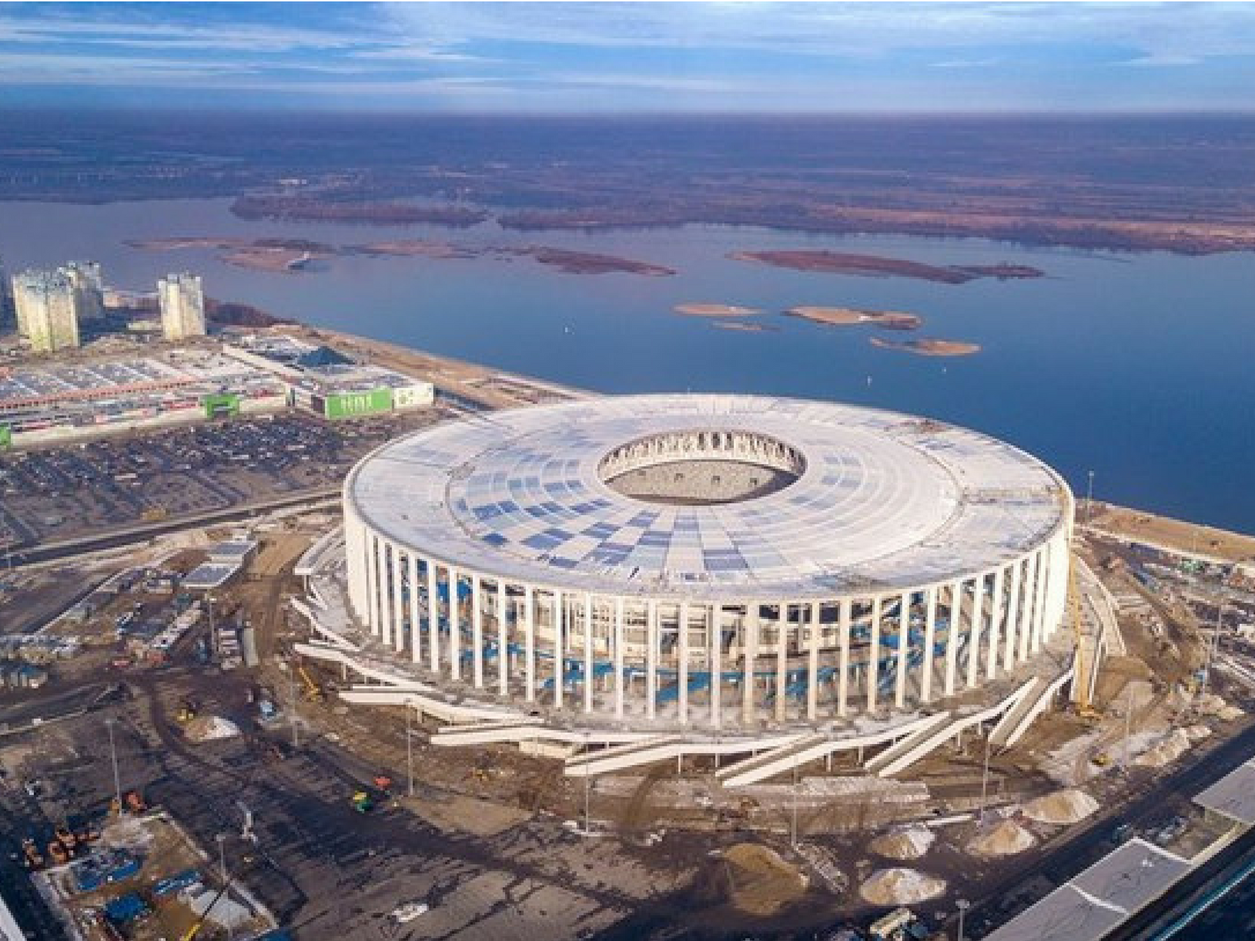 É claro que os estádios da Copa da Rússia não poderiam ficar de fora dessa lista. Um dos mais interessantes e complexos é o Nizhny Novgorod, que simboliza a água e vento. Não tem esse movimento? O interno do estádio conta com cores de branco e azul que deixam a luz passar de forma difusa, como a água. Já adorei e to louca pra ver o Messi jogando aí!
