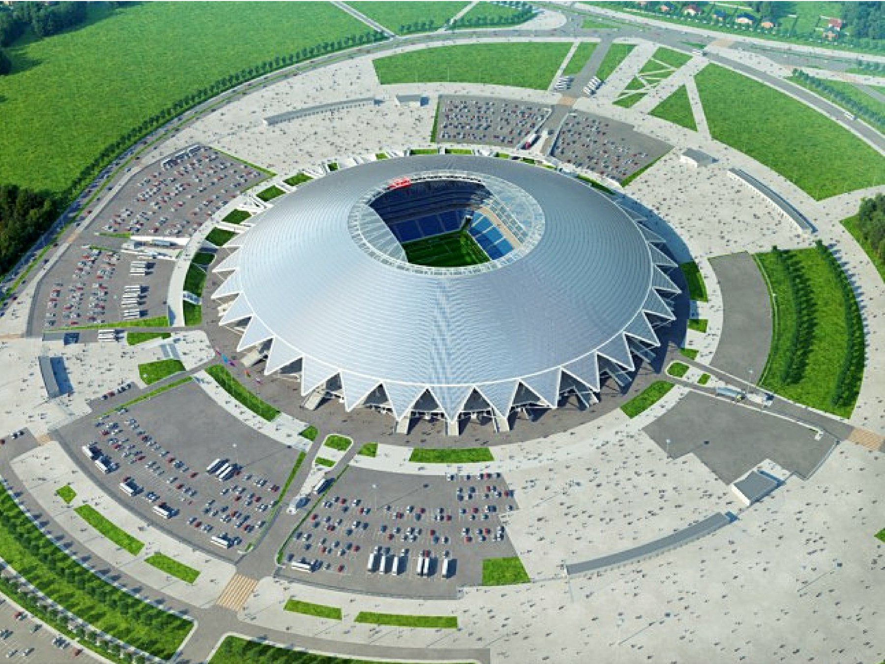 A vontade é de colocar todos os estádios da Rússia sim mas vou nos poupa para apenas dois. O Samara parece uma nave espacial e foi o que demorou mais tempo a ficar pronto. A cidade de Samara é historicamente conhecida pela exploração espacial (alô Americanos!) e é isso que o estádio representa. A cúpula é formada de 32 vigas radiais e cada uma delas pesa 277 toneladas. UAU!