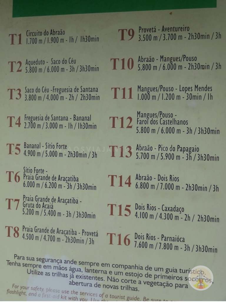 Ao todo são 16 trilhas “oficiais” sendo que a maioria pode ser feita num bate e volta e outras exigem paradas.