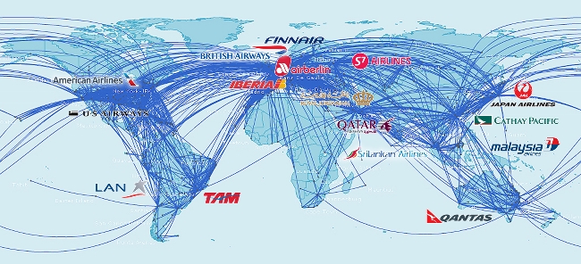 As empresas que fazem parte da Aliança Oneworld e possuem voos saindo do Brasil são a Ibéria, Qtar AIrways, a LAN, American Airlines, US Airways e British Airways.