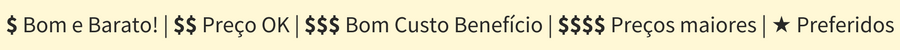 ( ! ) Para aproveitar melhor esse guia eu sugiro que voce escolha o bairro em que gostaria de comer. Depois procure por culinária e preço que está disposto a pagar.
