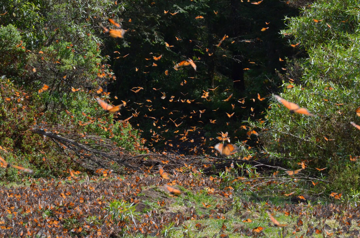 Aldeões mexicanos locais chamam-nas de las palomas – “almas das crianças perdidas” e a explicação gerou toda uma história. Perguntava-se onde é que as 120 milhões de borboletas-monarcas (aquela amarela e preta) da América do Norte iam a cada inverno. O mistério permaneceu desde sempre até o ano de 1975, em que descobriu-se a incrível história das borboletas que hibernam. Por quatro a cinco meses as borboletas permanecem quase imóveis, mas nos primeiros dias de aquecimento em fevereiro elas começam a se mexer. Em poucos dias a população toda acorda e voa formando a massa de borboletas laranja (como a foto).
