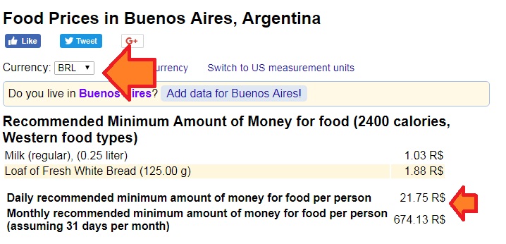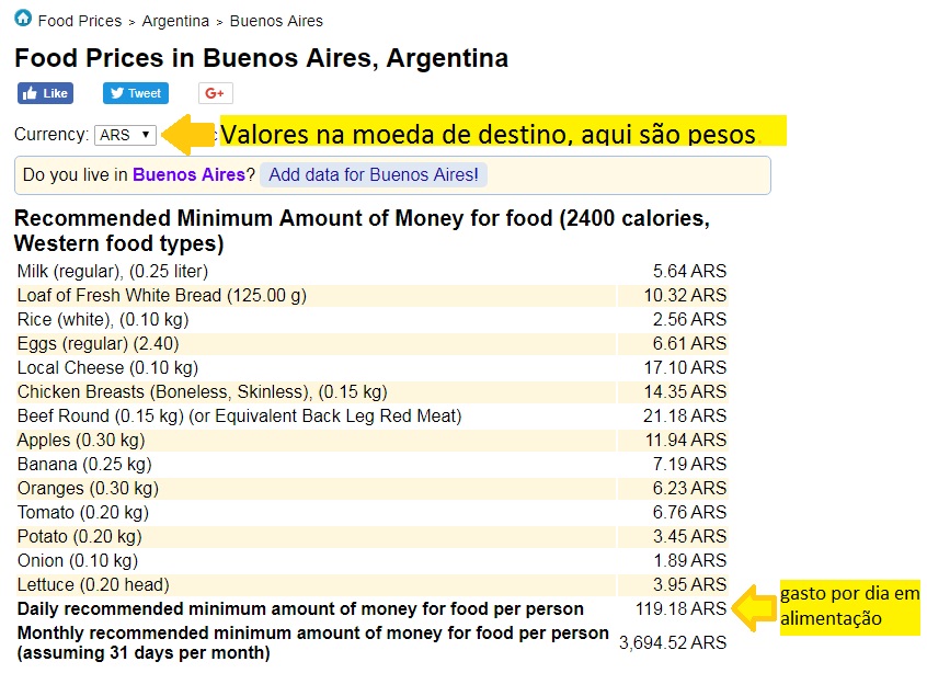 Veja quanto ficou nesse exemplo de quanto se gasta em Buenos Aires: