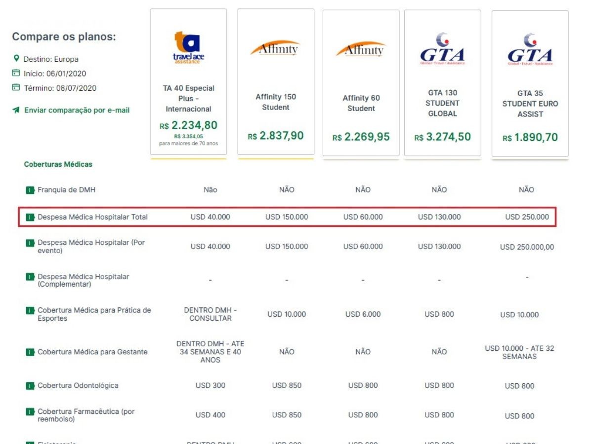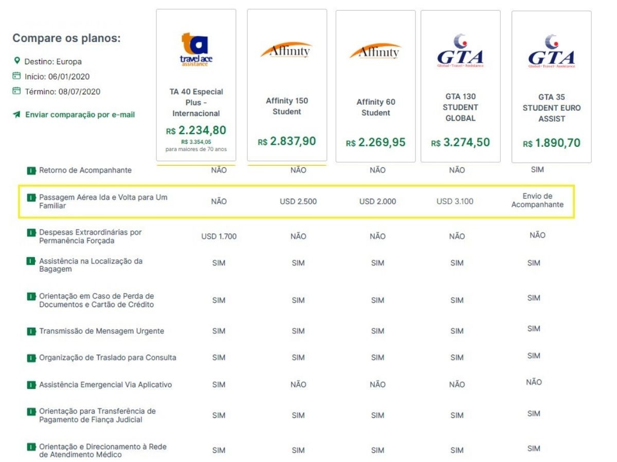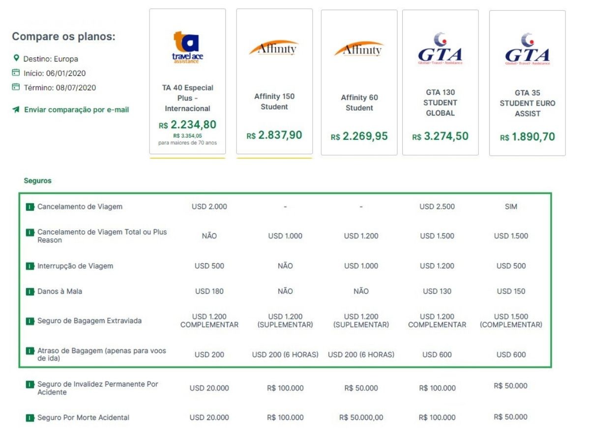 Já para um seguro mais completo ou destino EUA uma boa opção é o GTA 130 Student Global, mas ele também é o mais caro.