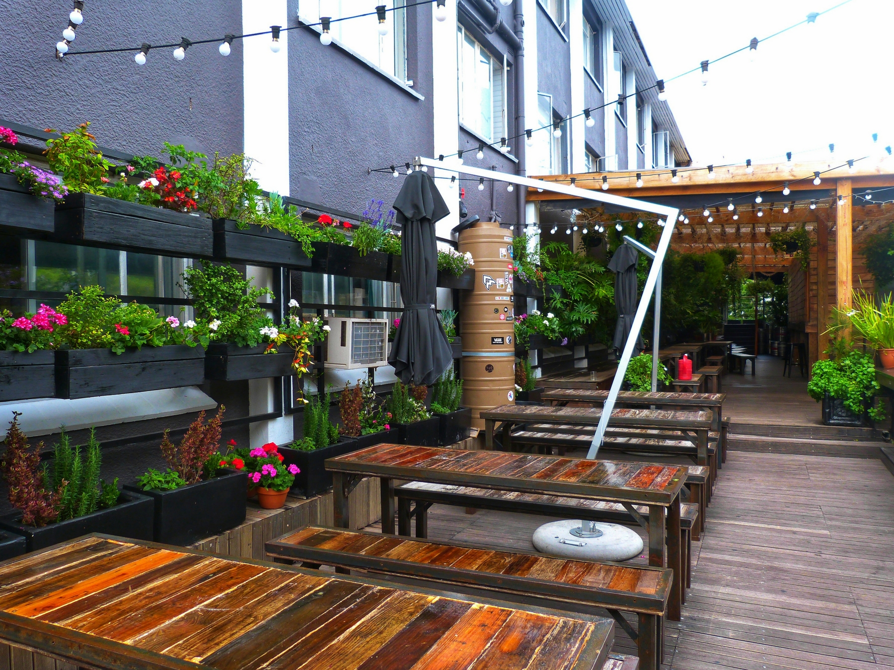 No andar de cima há uma área para festas, há um bar ali e mesas ao céu aberto. No dia que cheguei havia uma festa e embora eu estivesse exausta da viagem, passei por ali e curti o agito!